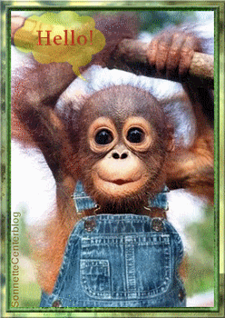 qu'il est chou ce petit singe avec sa salopette ..un joli bonjour avec ses grands yeux expressifs !Coucou SonnetteC'est moi qui frappe à ta porte ce matin !